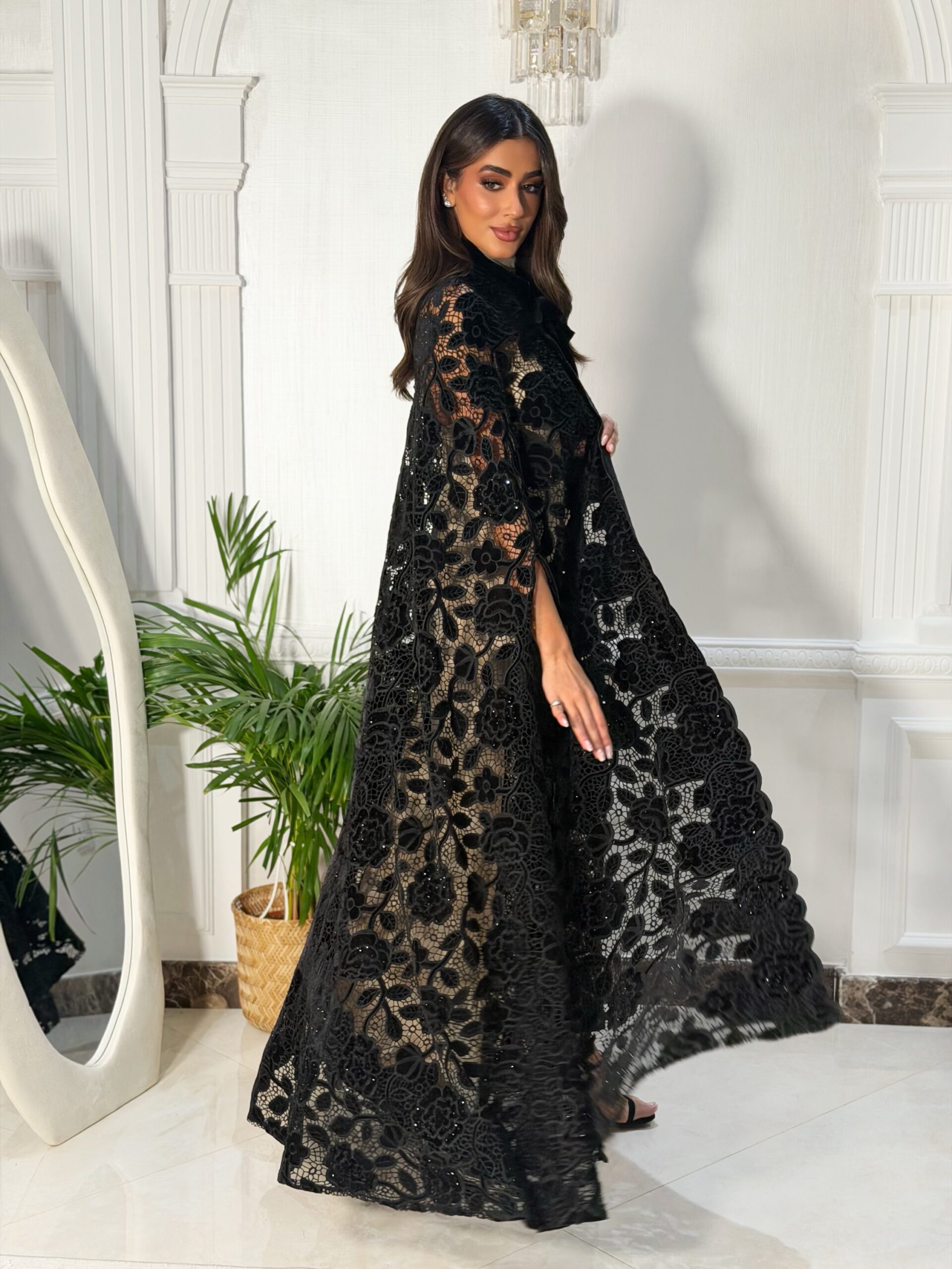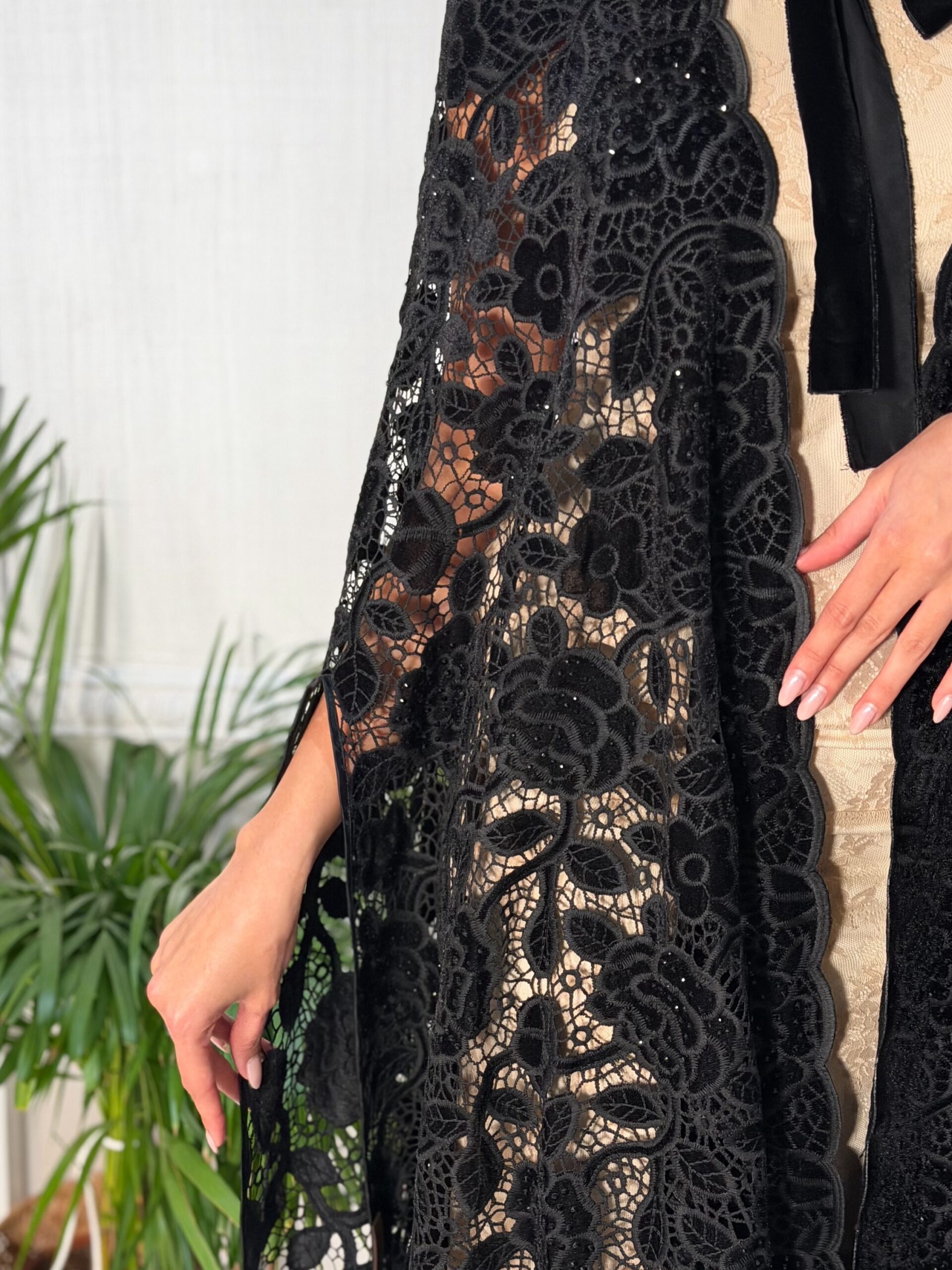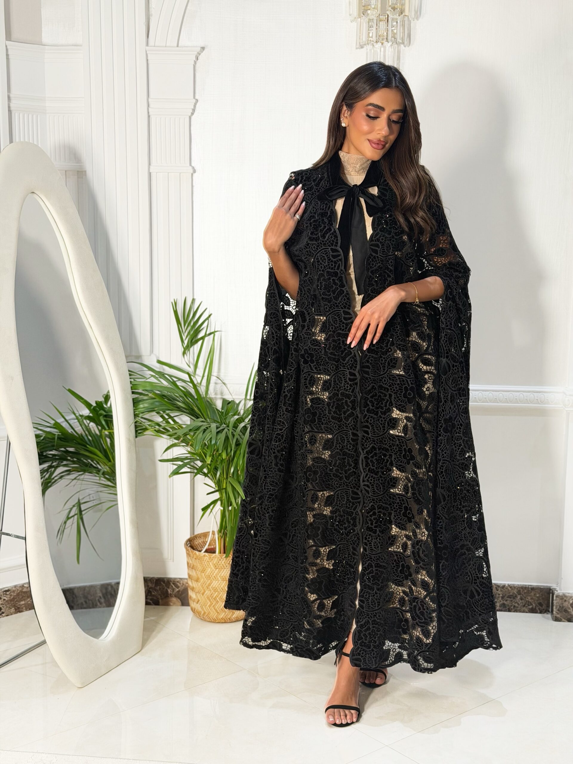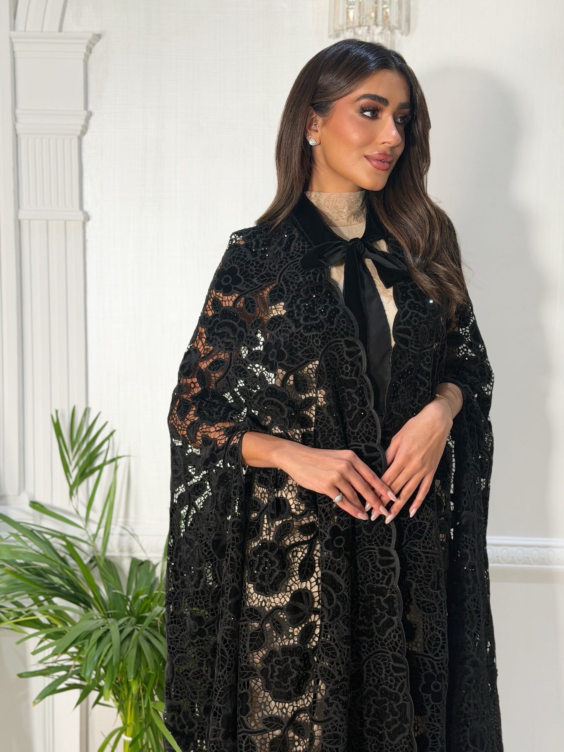 عباه دانتيل مخمل مع فصوص للمناسبات